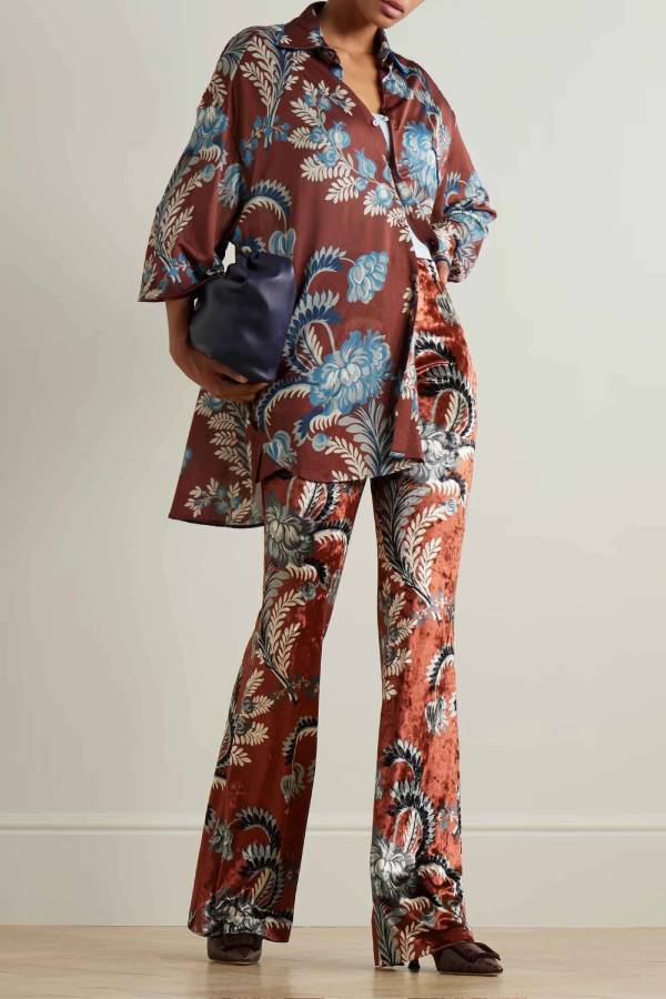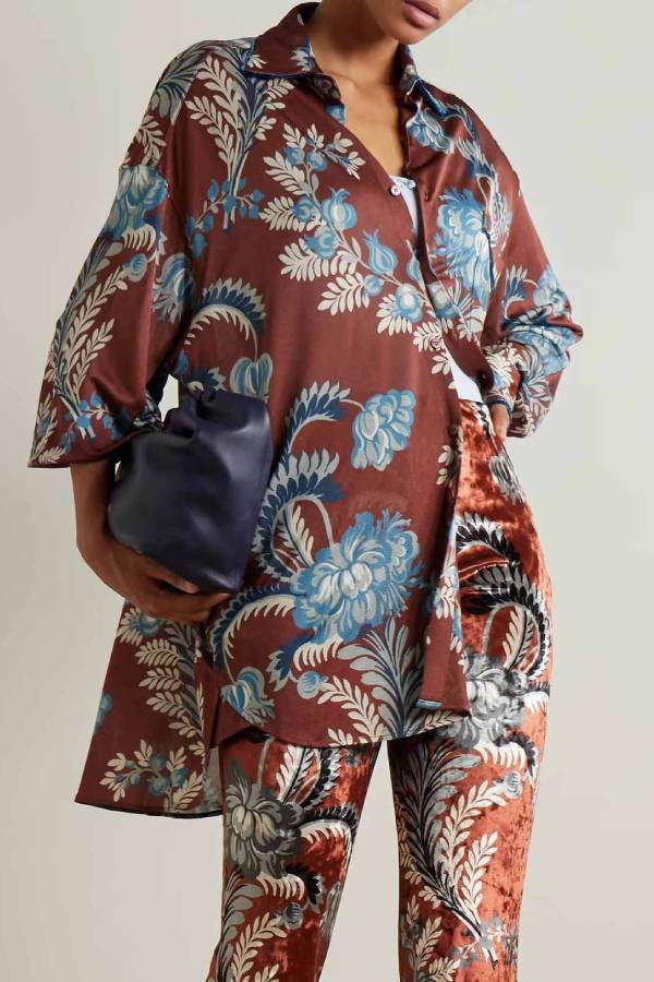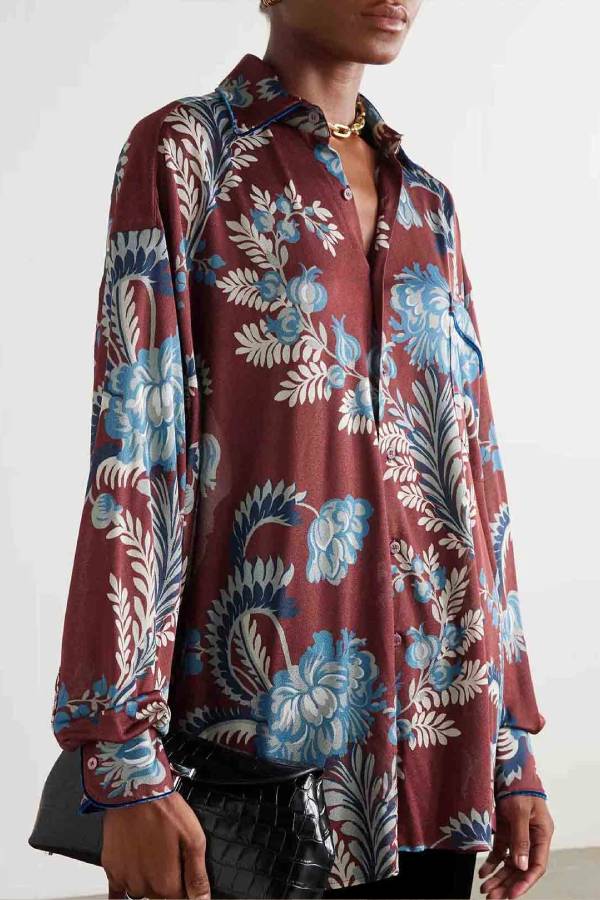 The shirt features a delicate floral pattern that adds a touch of vintage elegance to your wardrobe. The loose fit and long sleeves make it comfortable and stylish, making it a great choice for casual travel or layering in the cooler months.