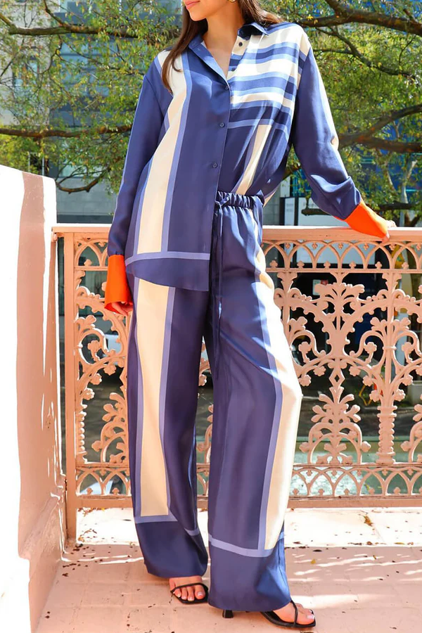 Exquisite Unique Striped Print Patchwork Kutton Oversized Blouse