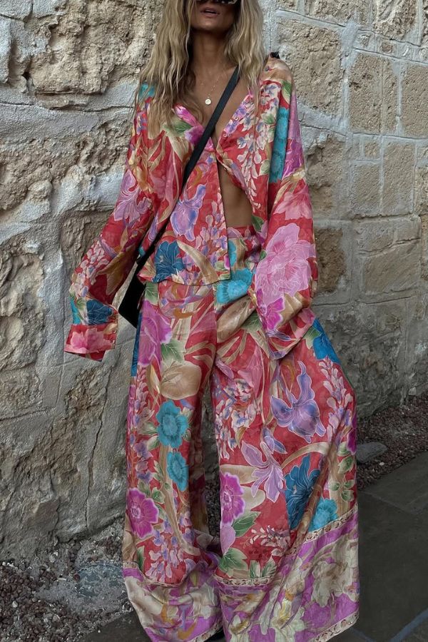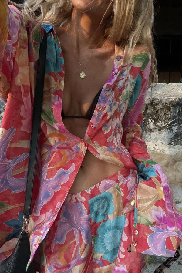 - The Painter's Garden Shirt brings a pop of color to your wardrobe. Crafted from a liquid-like fabric with a hidden print, this shirt embodies effortless luxury. Our shirts are intentionally oversized for a relaxed yet sophisticated fit, and button down the front to open for a versatile look. We imagine our shirts paired with jeans and slides for a casual look, or with Painter's Garden wide-leg pants for effortless resort glamour.