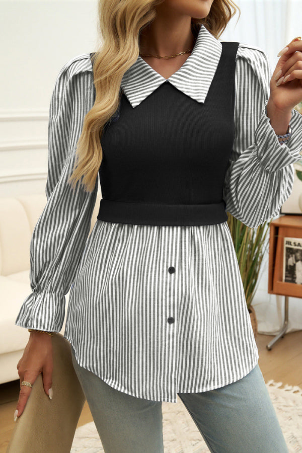 Women Fashionable Colorblock Striped Long Sleeve Blouse
