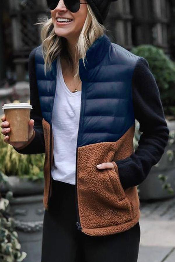 Stay on trend this season in our new casual, mandarin collar coat. We especially love the patchwork fabric and think this piece will be a new favorite in your closet!