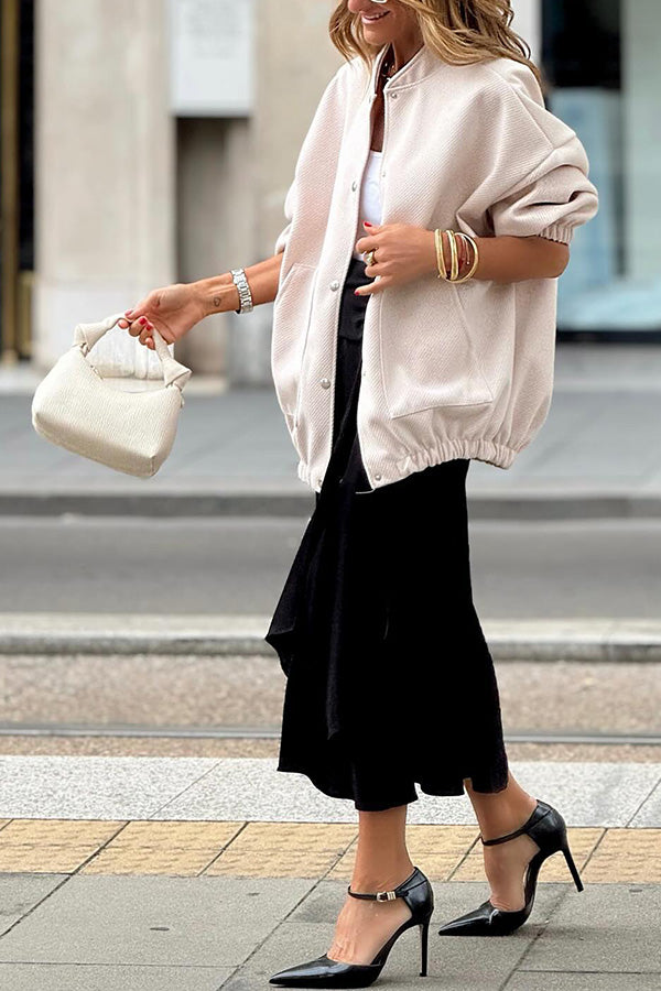 Solid color women's coat with stand collar and large pockets