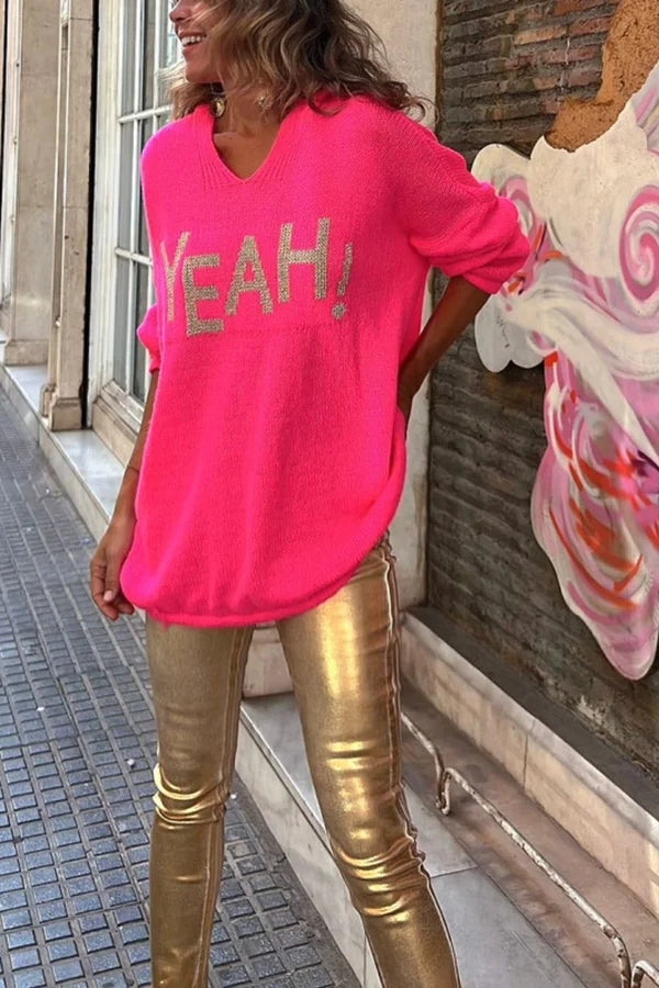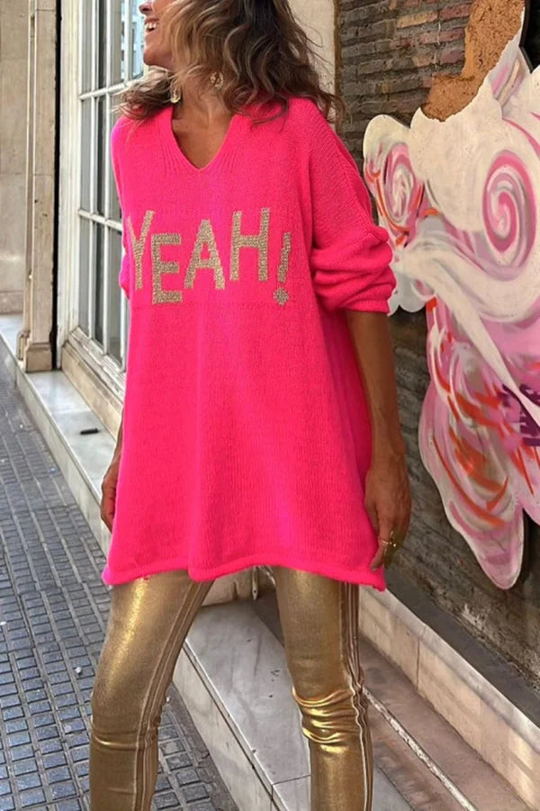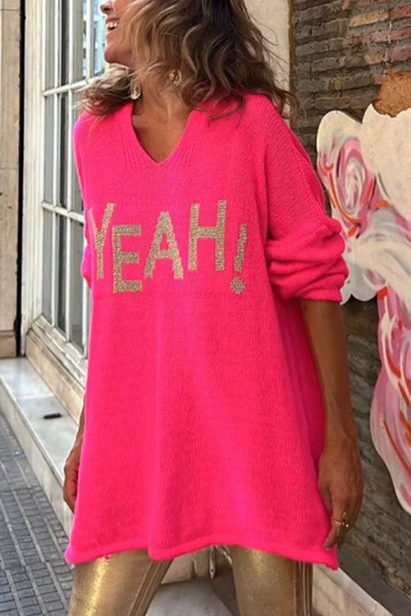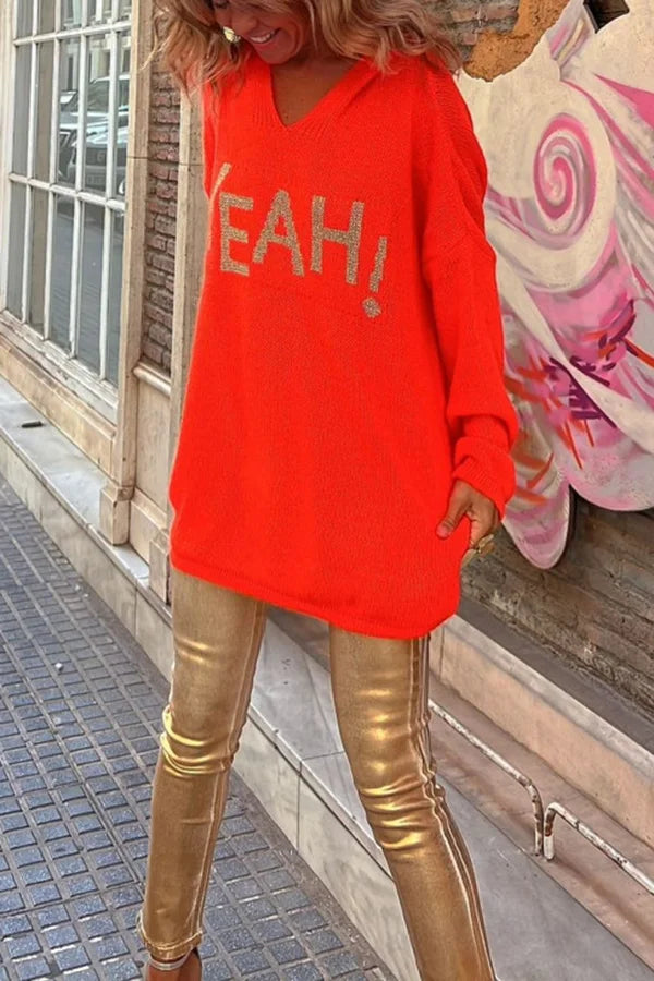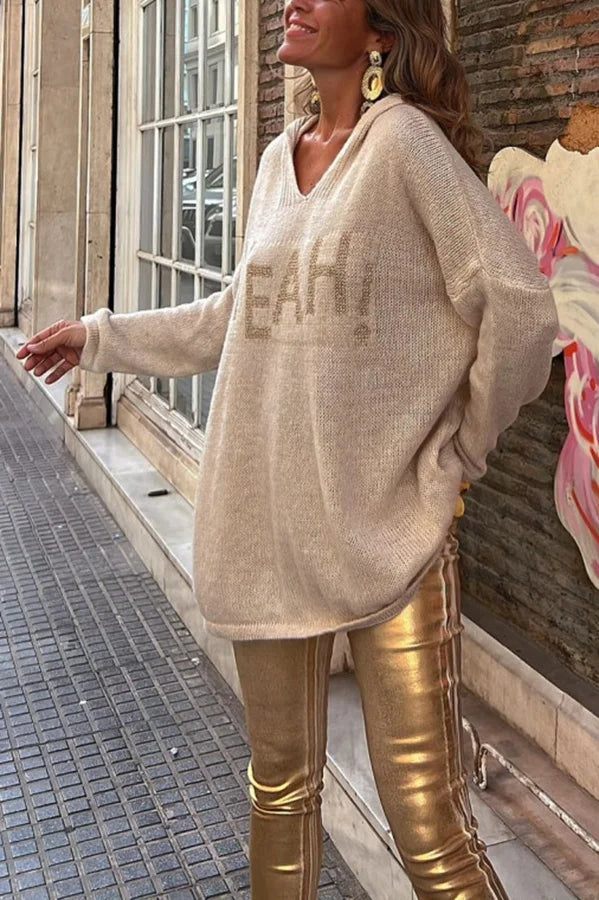 Autumn Full of Surprises Knit Yeah Pattern Loose Hooded Sweater
