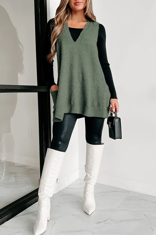 Fabulously Chic Knit Side Pocket Oversized Sweater Vest