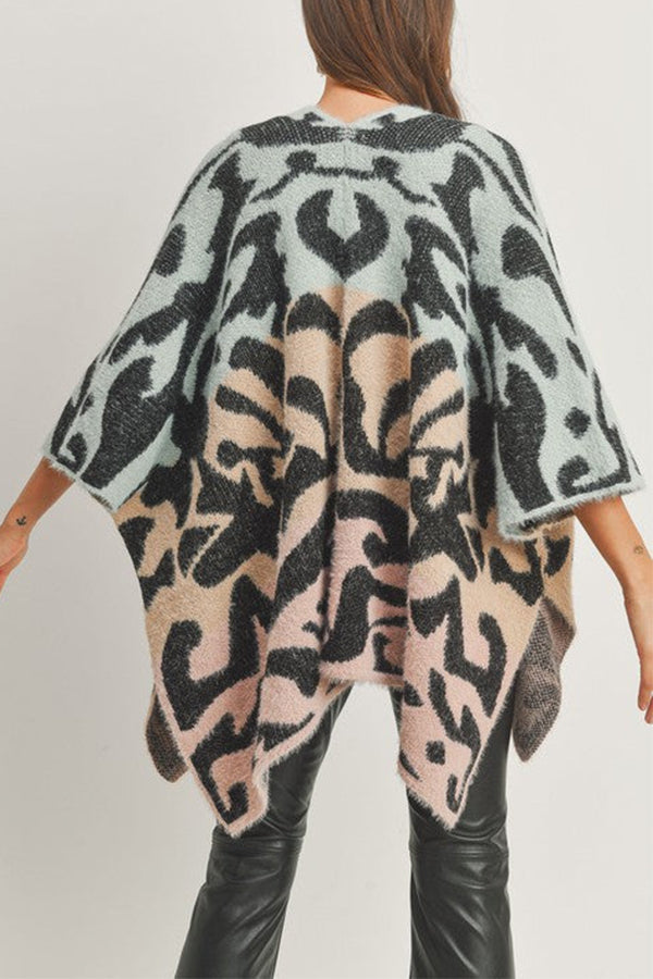 Incredibly Soft Knit Gradient Animal Print Poncho Cardigan