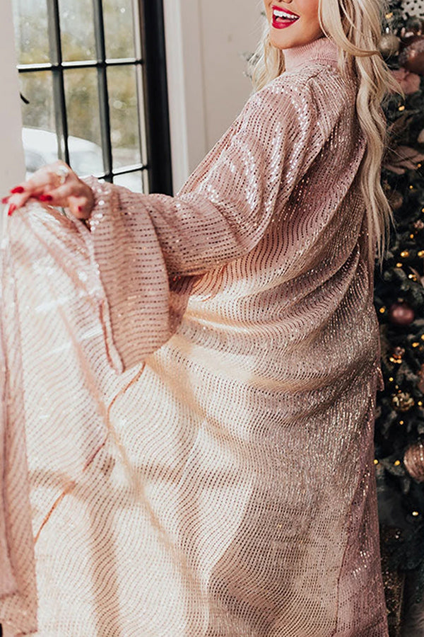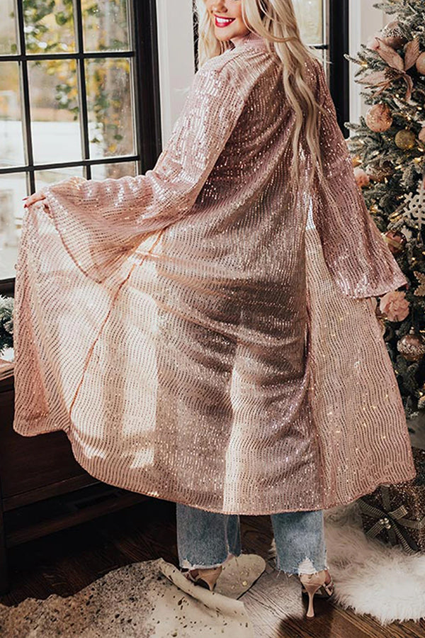 Rose Tan Open Front Long Sequin Bell Sleeves Cardigan
