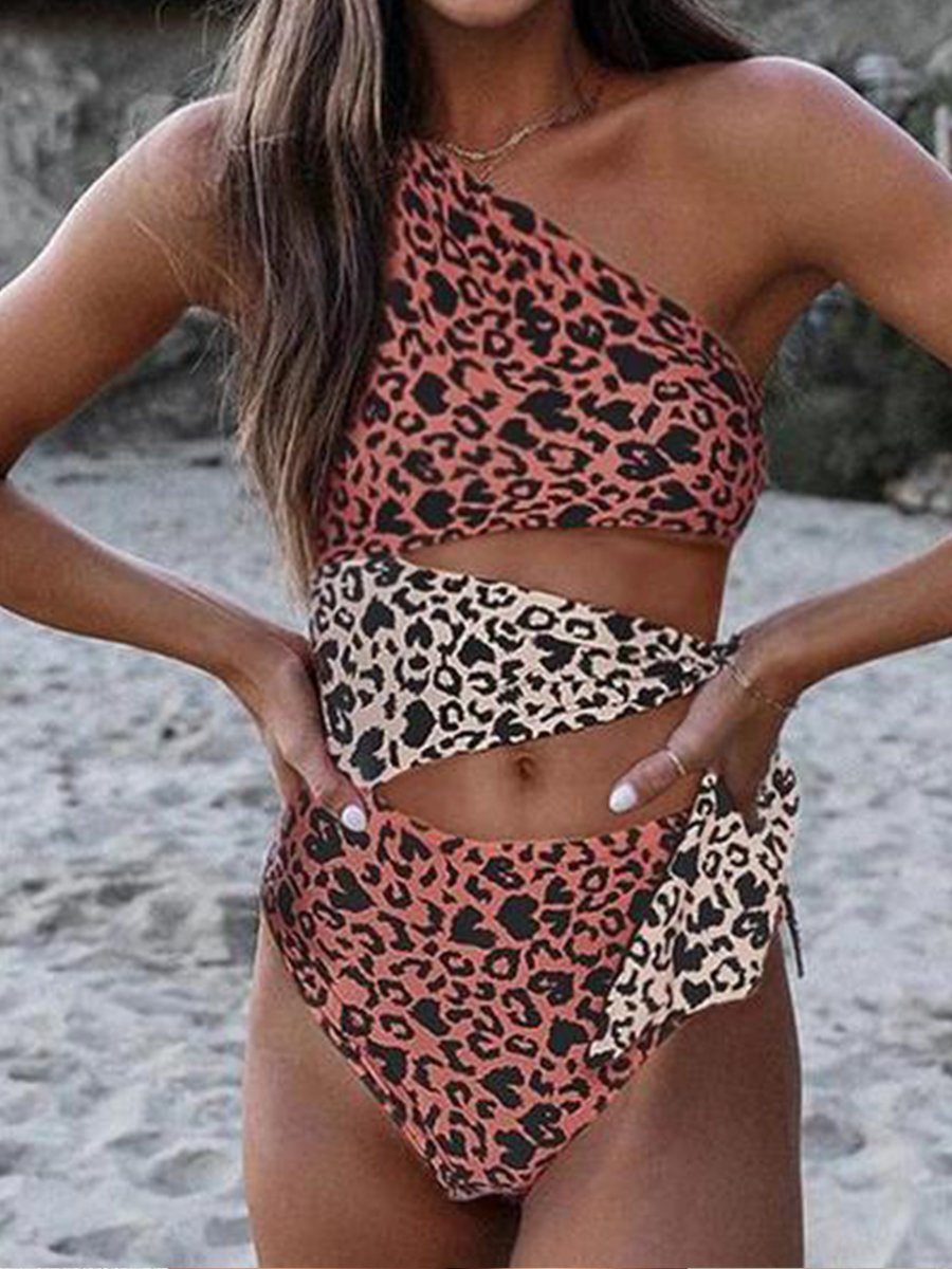 Casual Leapard Print Cut Design One-Piece Swimwear