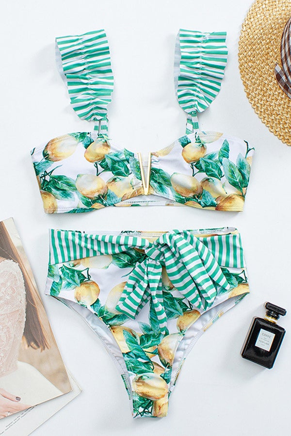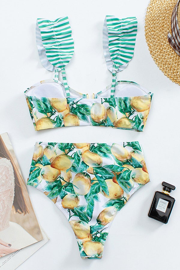 Colorful and Cute Lemon Print Bikini Swimsuit