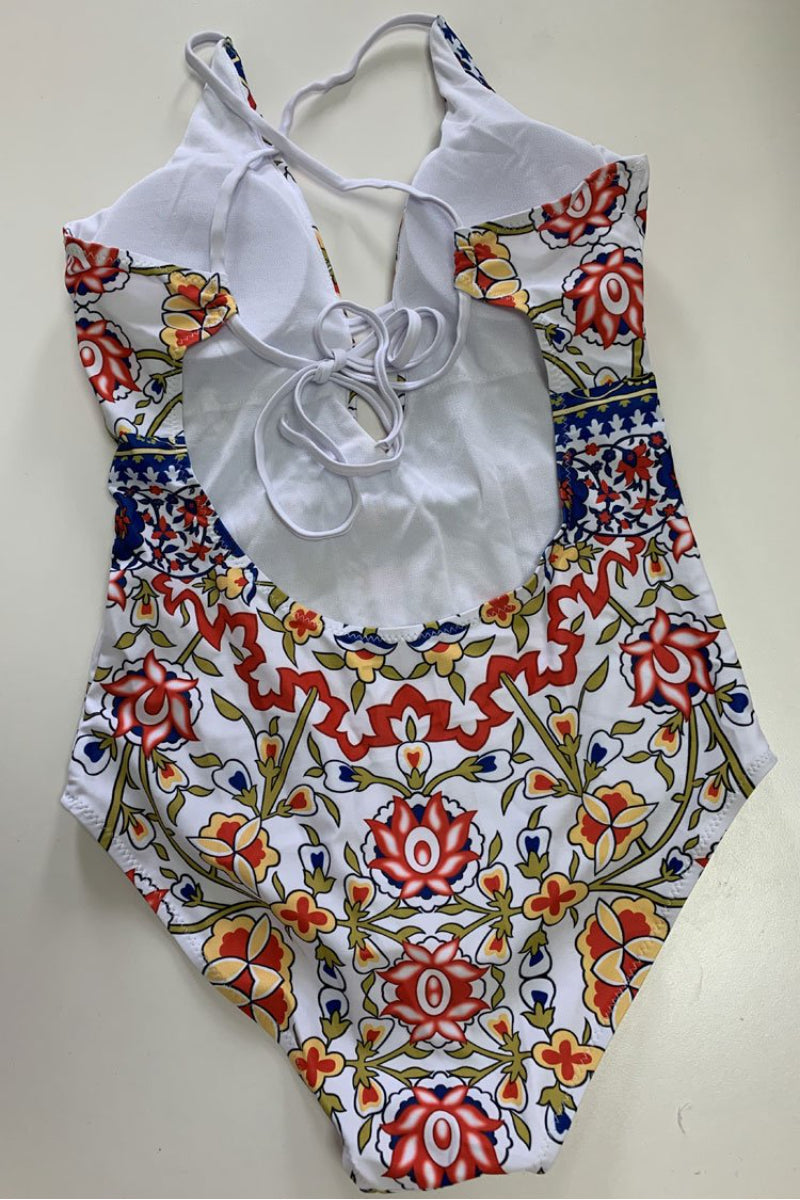 Ethnic Crisscross Strappy Low Back High Leg Deep V One-piece Swimsuit