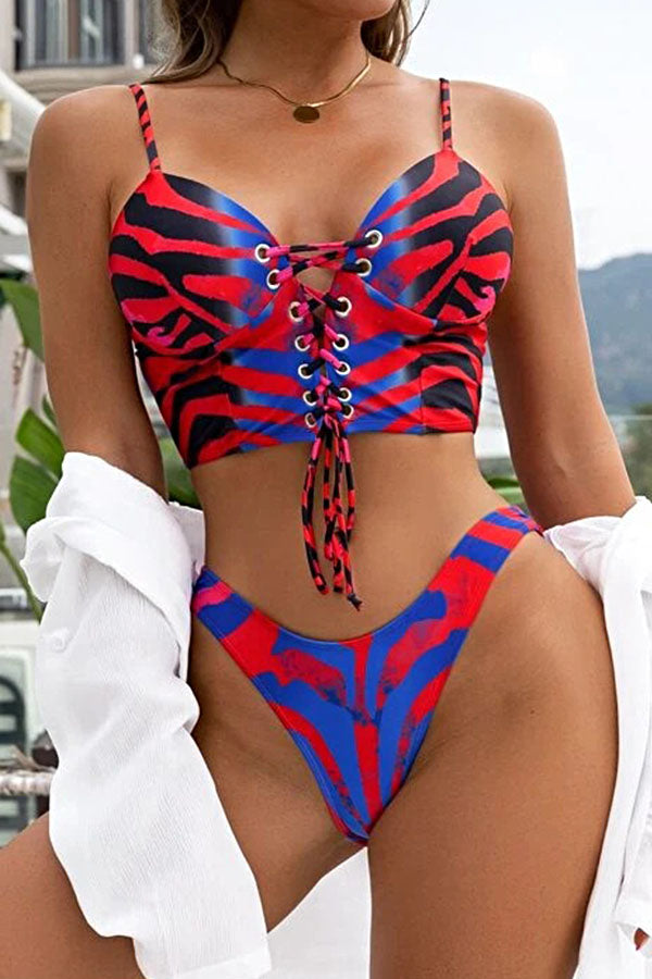 In Focus Animal Print Lace Up Bikini Swimsuit