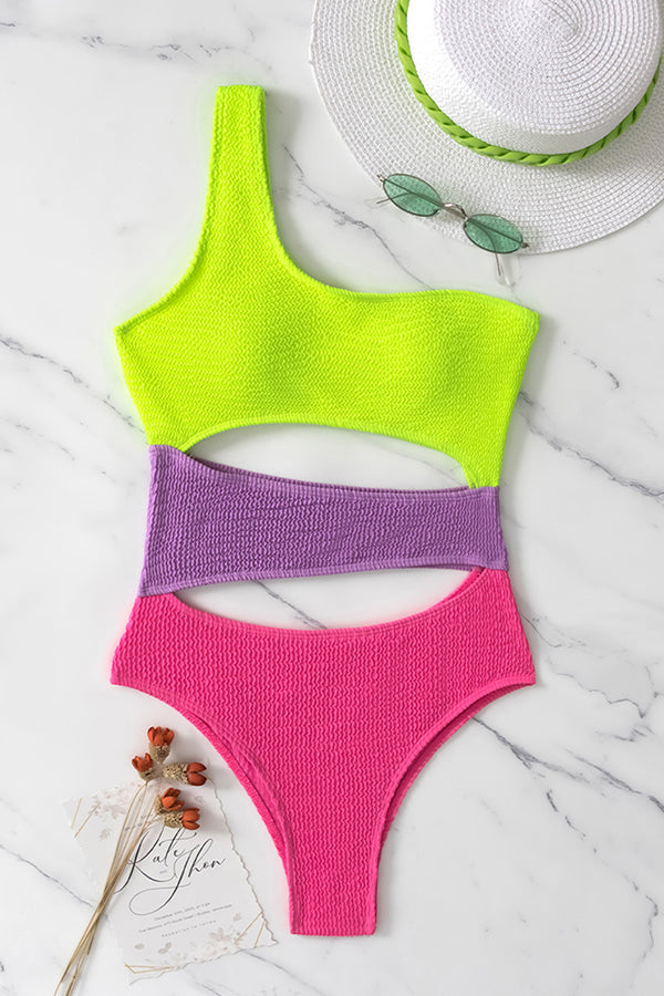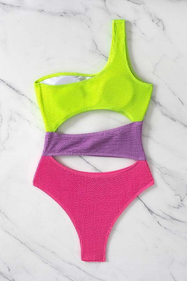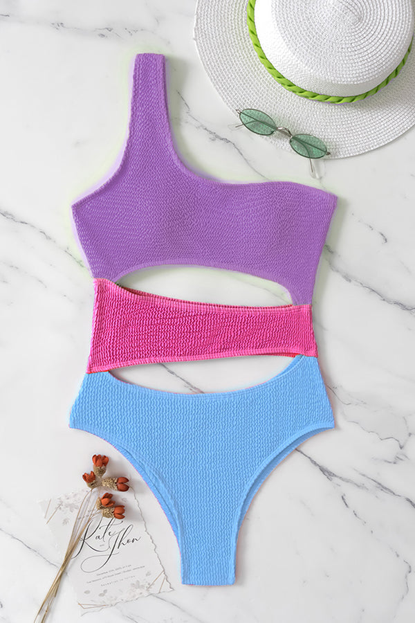 One-Shoulder Contrast Panel Cutout One-Piece Swimsuit