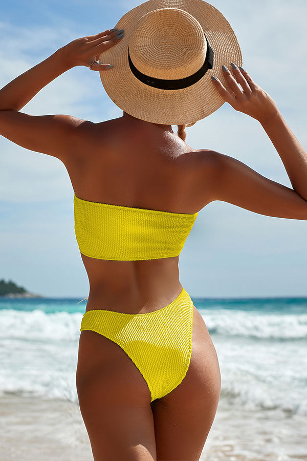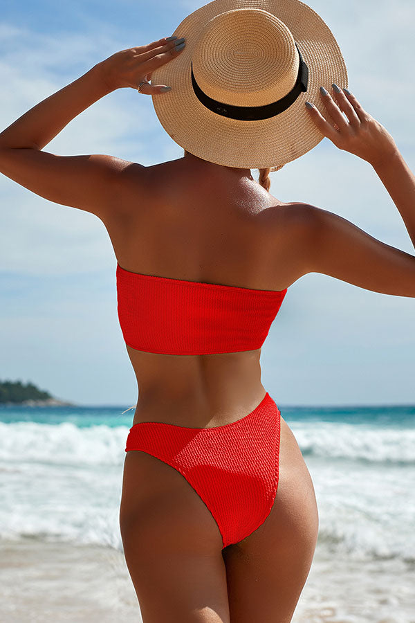 Pure Color Snake Cloth Tube Top High Waist Bikini