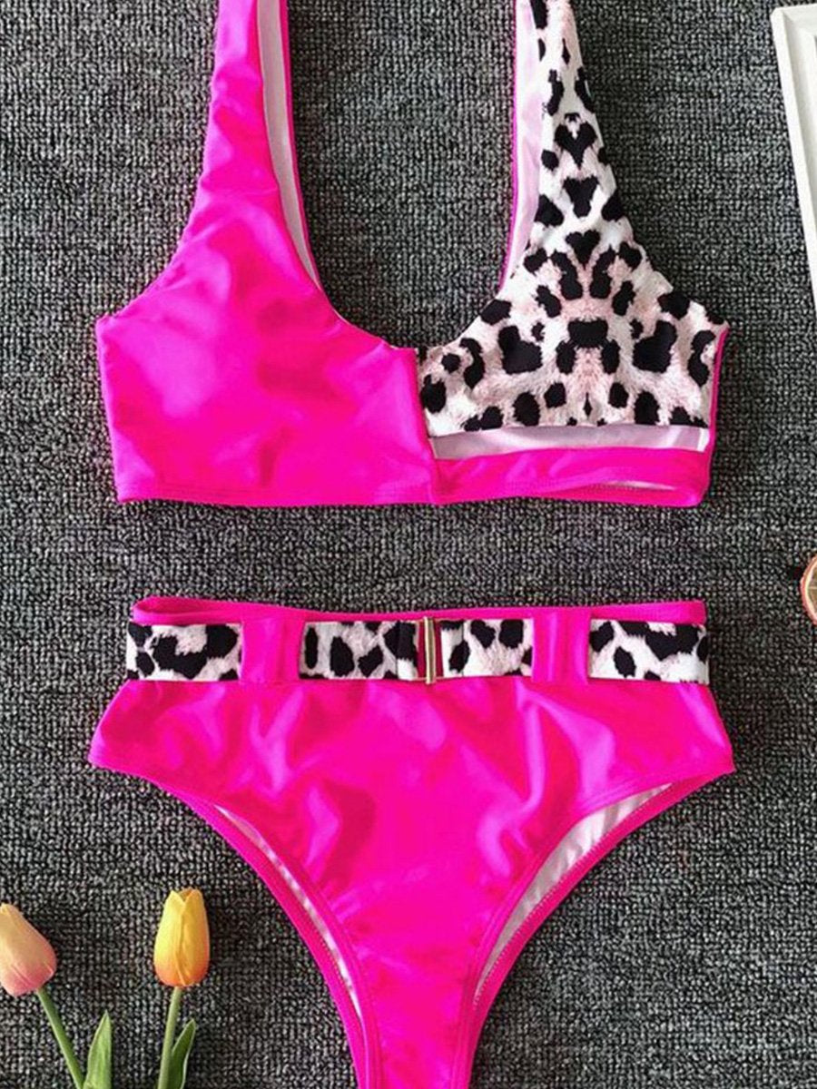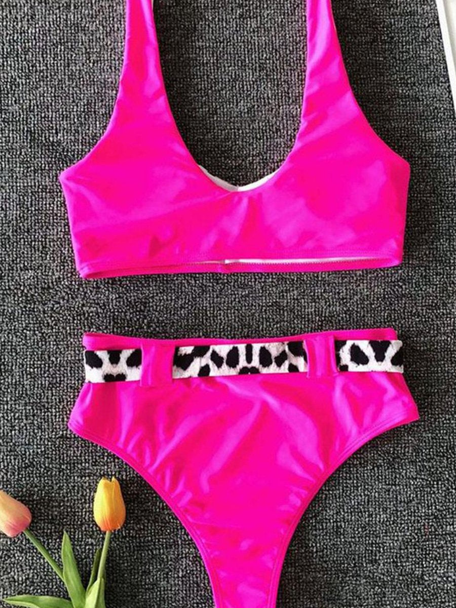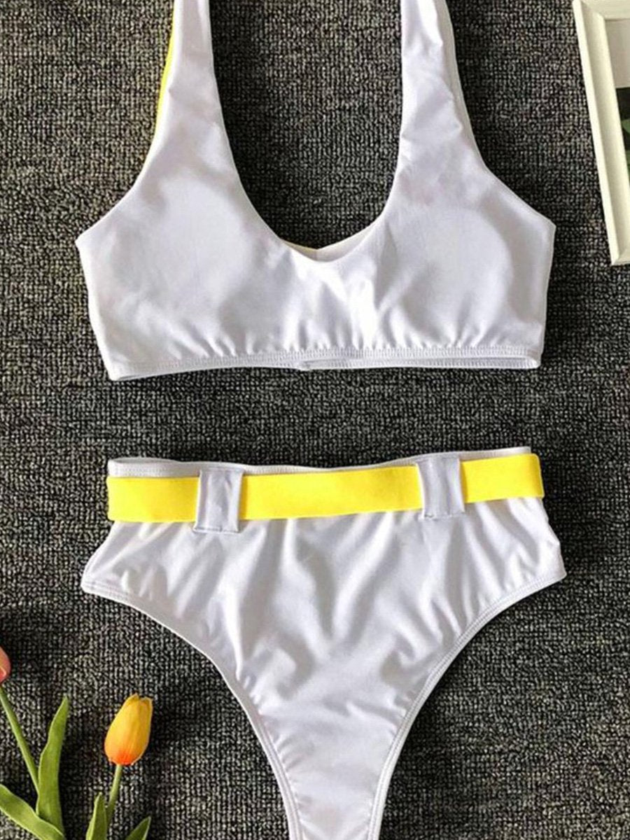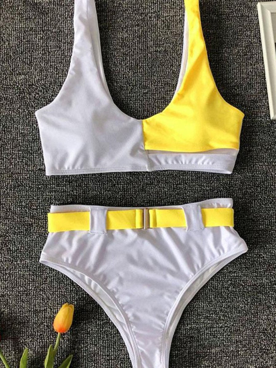 Removable Padding Cut Out Color Block Two pieces Swimsuit