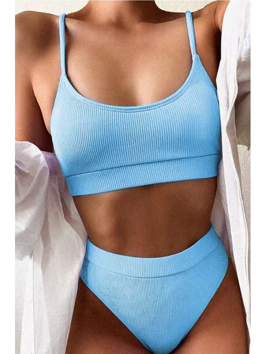 Rib-Knit Design Solid Purple Tankini Bikini Set(4 Colors)