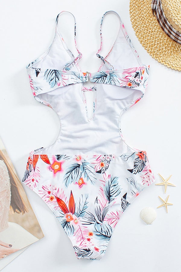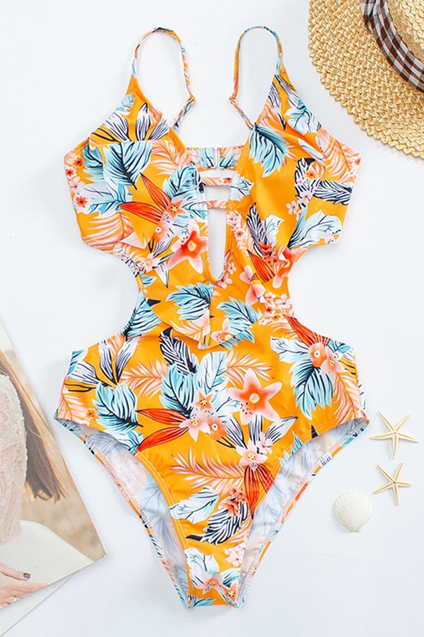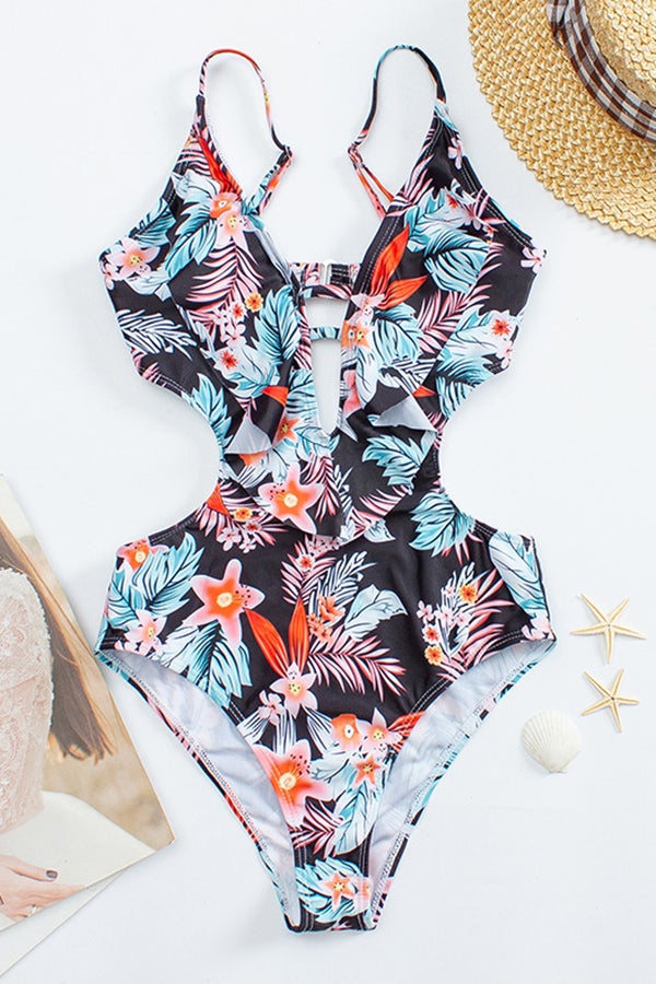 Ruffle Print Waist Cutout One-piece Swimsuit