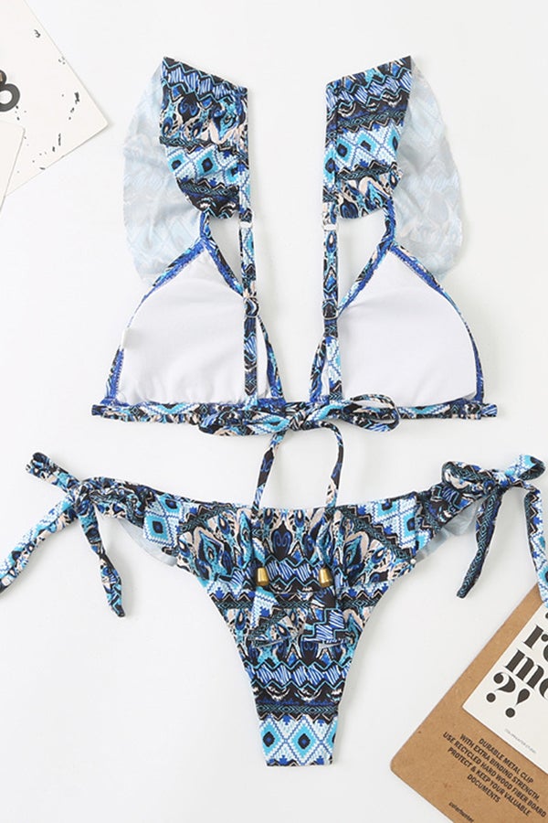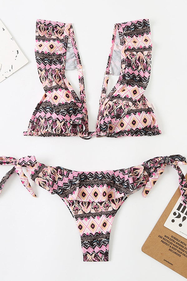 Ruffled Geometric Print Bikini
