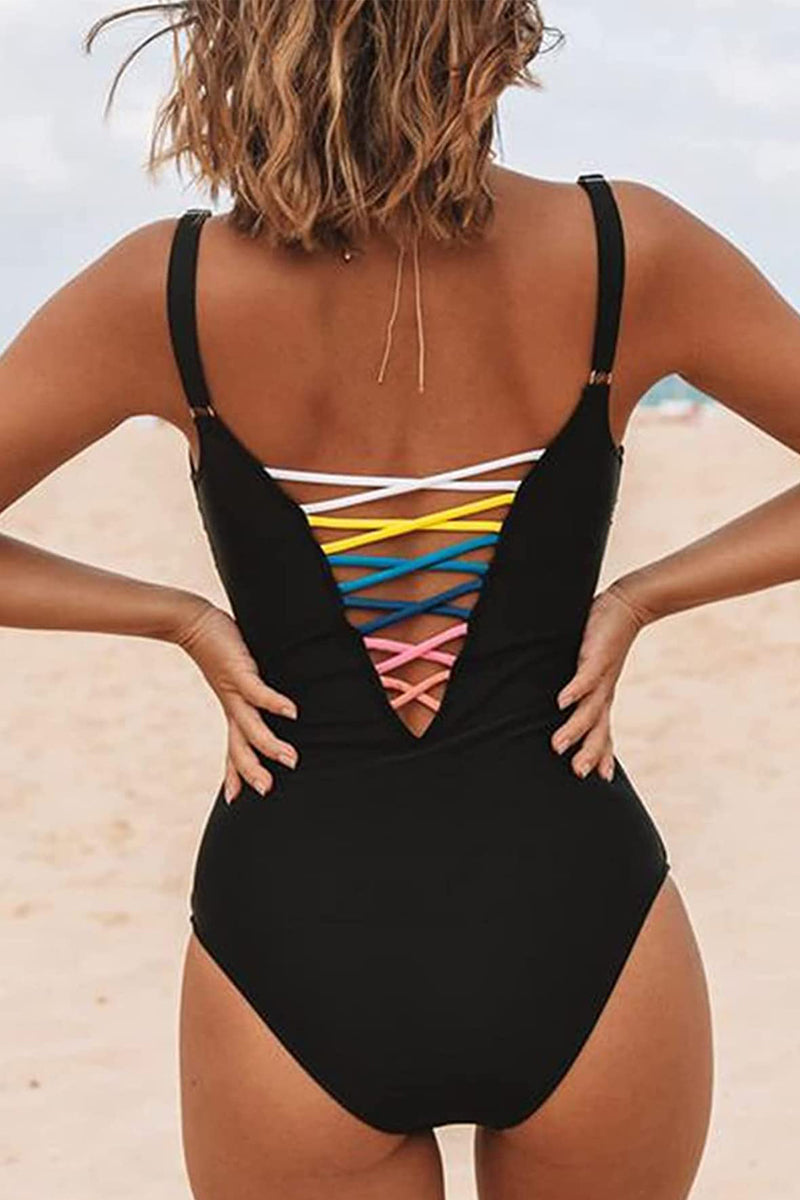 Sexy Lace Up Deep V One-piece Swimsuit