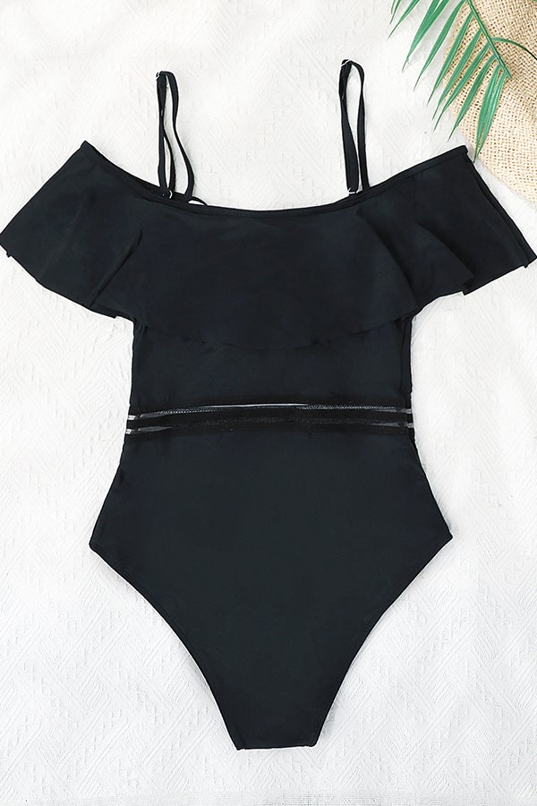 Solid Color Ruffled Sling One-piece Swimsuit