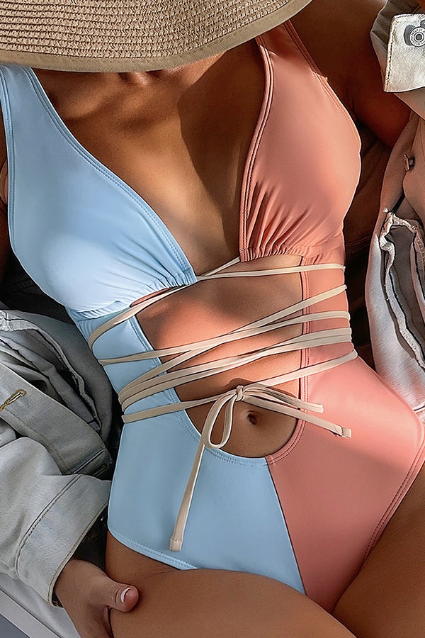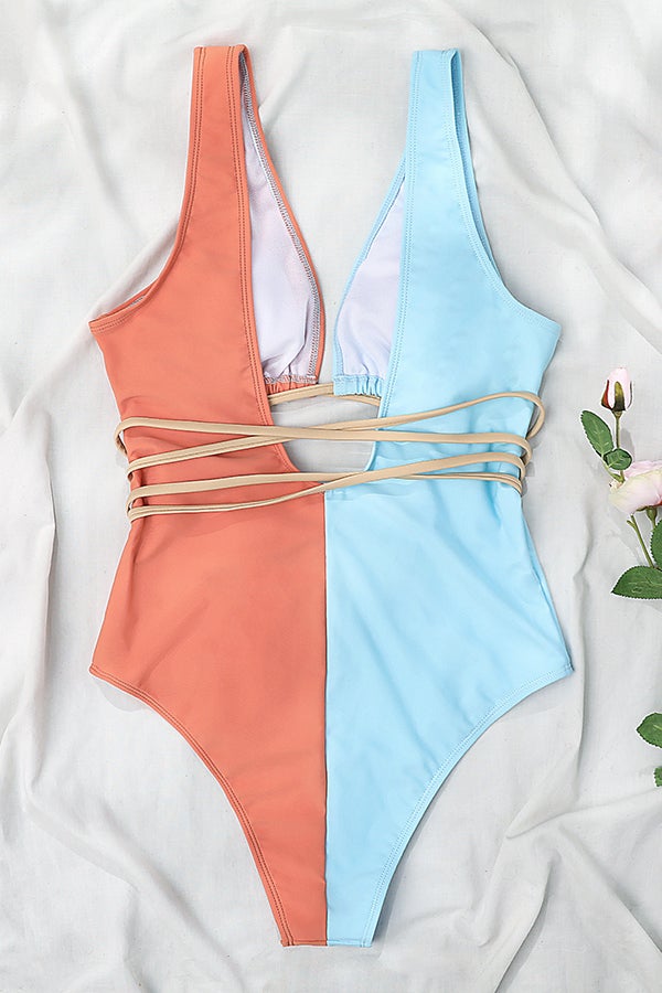 Stitching Hollow Contrast Color Strap One-piece Swimsuit