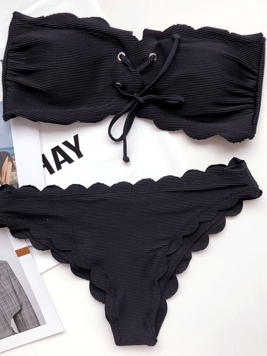 Strapless Knot Flounce Design Two Pieces Swimsuit (2 Colors)