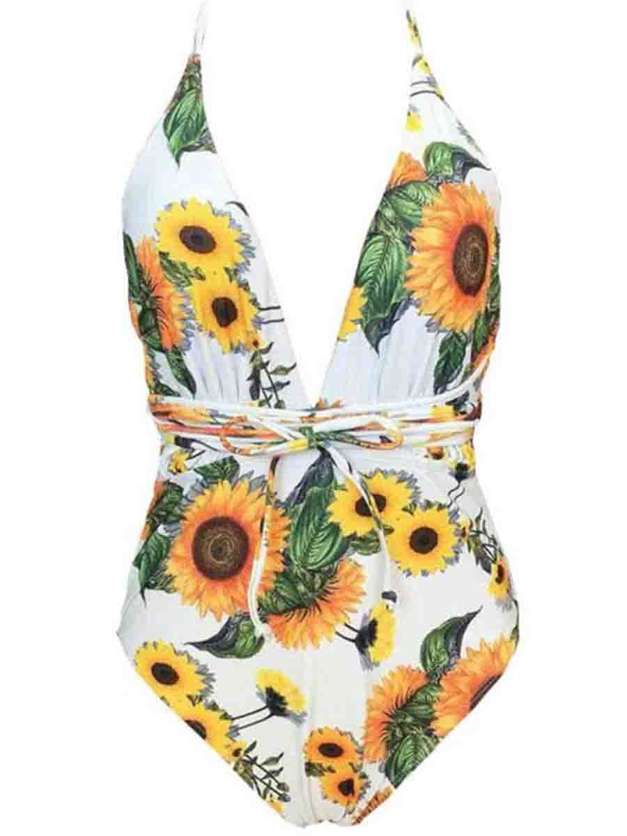 Sunflower Multi Low-back Deep V Brazilian One-piece Swimsuit