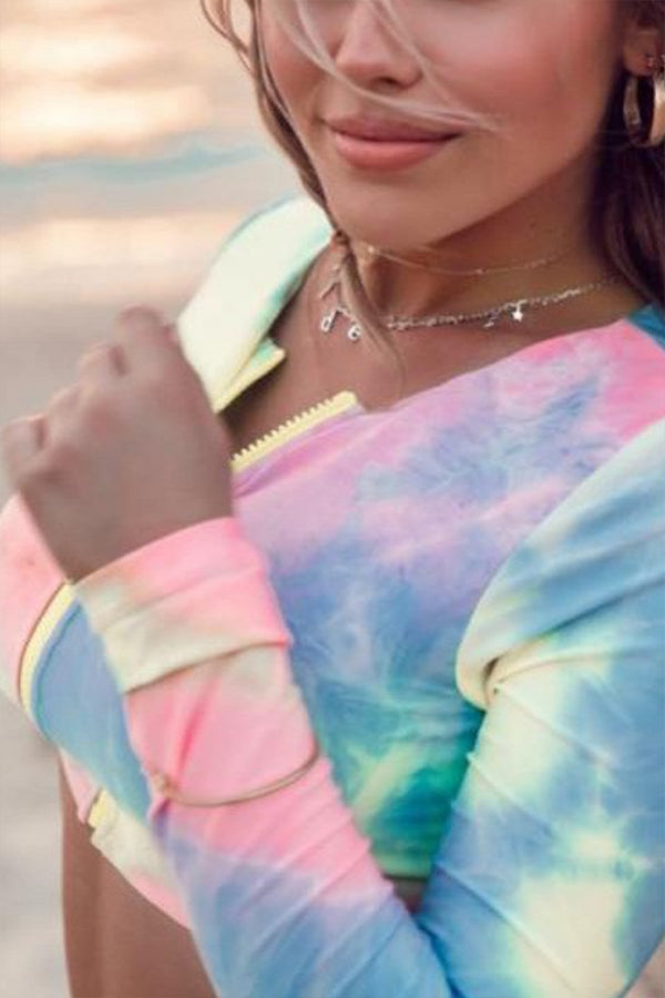 Tie Dye High Leg Cropped Rash Guard Two Pieces Swimsuit