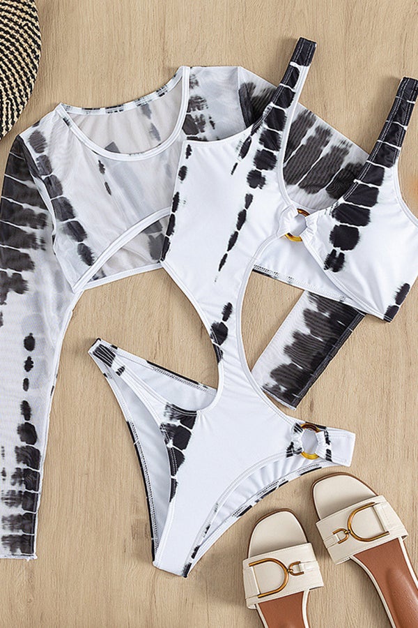 Tie-dye Hollow One-piece Swimsuit Mesh Two-piece Suit