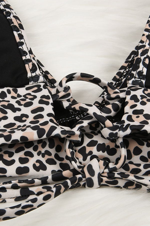 V-neck Ruffled Leopard Print Bikin