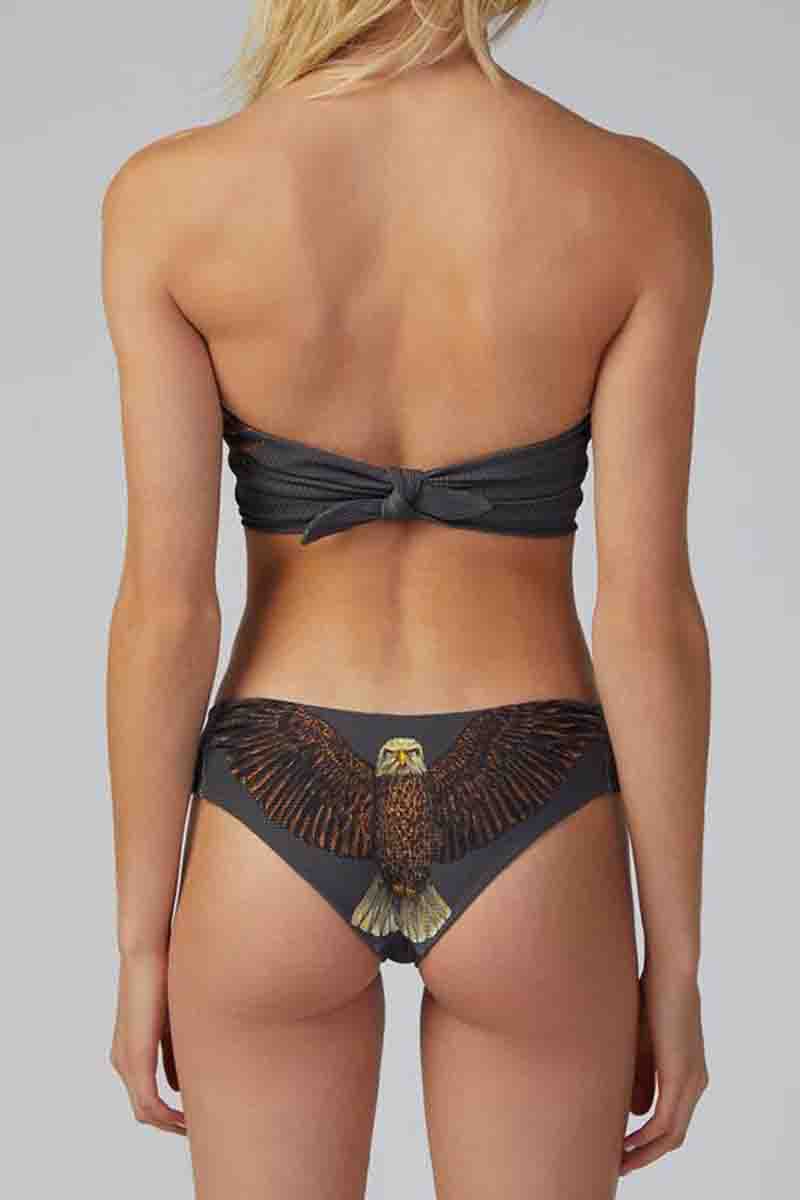 Strapless Eagle Print Grey Two Pieces Swimsuit